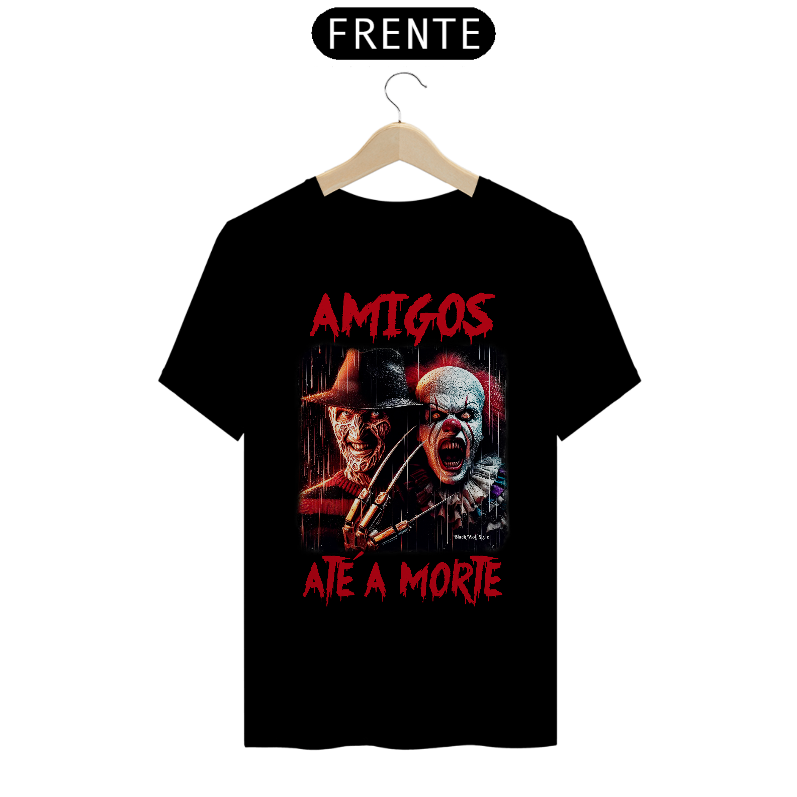 Estampa com texto humorado dos personagens Freddy Krueger (filme - A Hora do Pesadelo) com o palhaço Pennywise (filme e livro - It)
